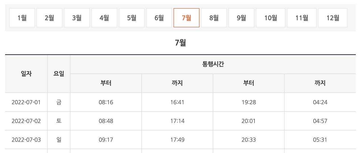 - 1차 통행시간: 오전 5시부터 오후 2시까지