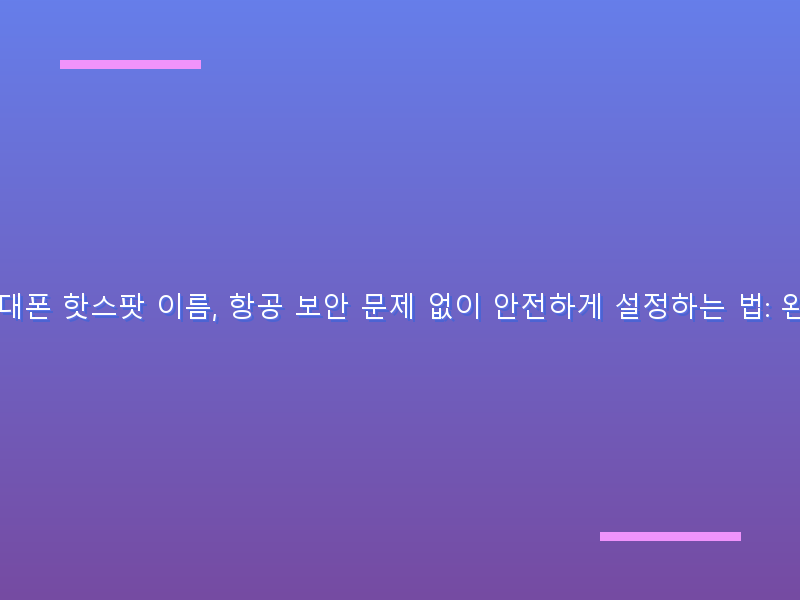 항공 보안은 테러 위협과 사이버 공격으로부터 승객과 승무원을 보호하기 위해 끊임없이 진화하고 있습니다. 이러한 상황에서, 스마트폰, 태블릿, 노트북 등 개인용 기기를 사용하는 빈도가 높아짐에 따라, 핫스팟 보안의 중요성은 더욱 커지고 있습니다. 특히, 핫스팟 이름 설정은 가장 기본적인 보안 조치 중 하나이지만, 많은 사람들이 간과하는 부분입니다. 안전하지 않은 핫스팟 이름은 공격자에게 쉽게 노출되어 개인 정보 탈취의 표적이 될 수 있습니다.